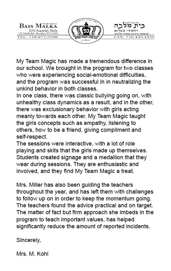 Watch Chani’s story to understand the effects bullying has on your students and how My Team Magic can help elevate achdus and inclusivity in your classrooms!