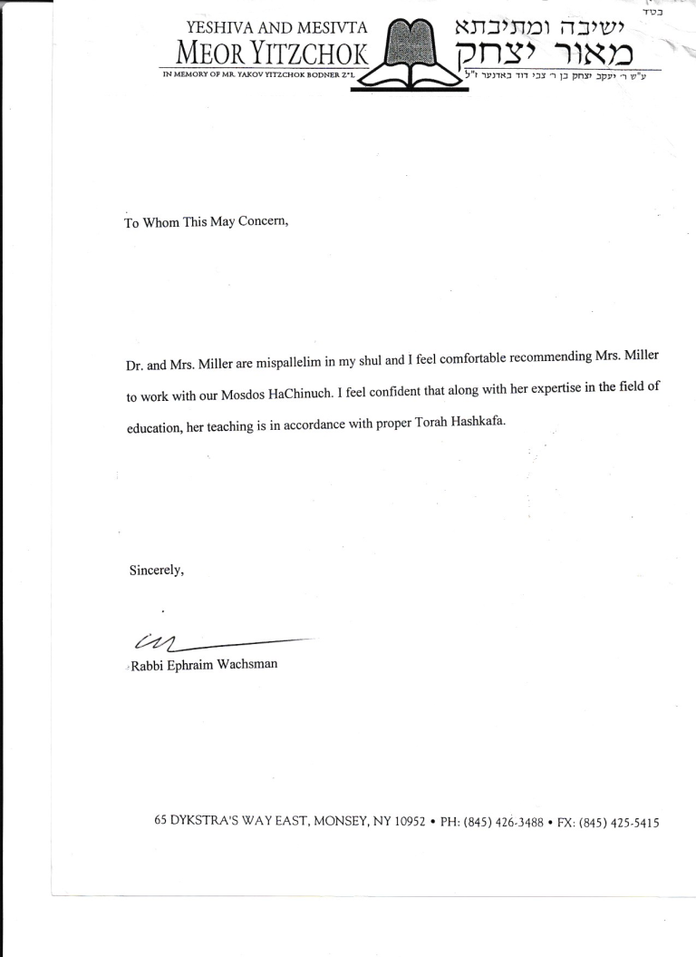 As recommended by Torah U'mesorah